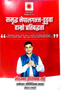 नेपालगन्ज, फागुन ४ । बाँके क्षेत्र नम्बर २ बाट एमालेका प्रतिनिधिसभा सदस्यका उम्मेदवार पूर्वमन्त्री मोहम्मद इस्तियाक राईले सोमवार आफ्नो प्रतिबद्धता पत्र सार्वजनिक गरेका छन् ।